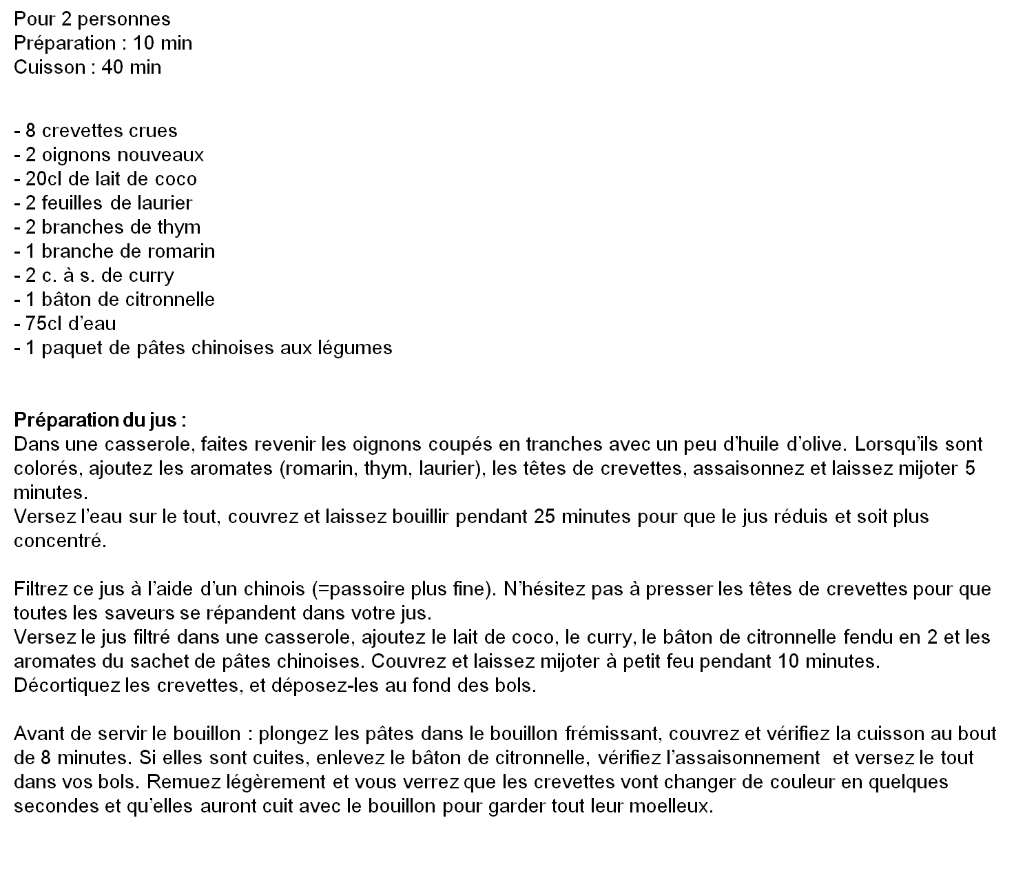 Bouillon thaï : citronnelle, crevettes, curry, coco
